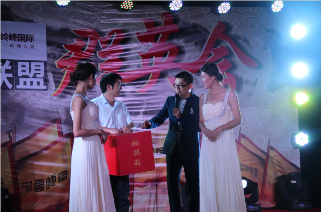 宴會首先由華策嶺峰國際副總經理曾文雄先生、同贏地產董事長鄔立強先生、同贏地產總經理陳立群先生先后致辭,在舉杯歡呼聲中宣布晚會正式開始,緊接著在邊吃邊聊、精彩節目加抽獎的活動過程中,精英們各自分享自己所用成交的經驗,探討成交秘訣,在總結過去成績與經驗時,也為將來的合作共贏進行了規劃。最吸引眼球的環節當屬現場豐盛的抽獎,一個個大獎相繼開出,中獎的地產商笑逐顏開,在火爆的節拍中翩翩起舞。