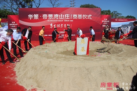 據(jù)了解,華策集團董事會成員及相關領導、建行、浦發(fā)銀行等多家大型企事業(yè)單位和多家媒體均到場祝賀,現(xiàn)場熱鬧非凡。當天上午11點鐘, 隨著主持人的上臺介紹,帝景灣山莊奠基儀式正式開始。