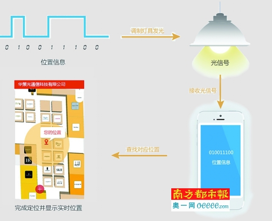 L E D燈因節能效果突出被人們所熟知和接受,而將其作為無線通信系統進行研究和突破則是世界上眾多科學家趨之若鶩的一項課題。目前僅有美國的一家企業掌握了同類技術,但仍處于實驗室研究階段,距離實現商業化應用還有較大差距。由華策光通信公司研發的“基于位置服務的白光通信技術”在定位系統精度上較無線室內定位技術精度提高了10倍,是室內導航、特殊行業領域人員管理、廣告精確推送和移動社交等應用的基礎,同時也是目前世界上在該領域唯一能夠實現室內精準定位并成功完成商業轉化的技術。