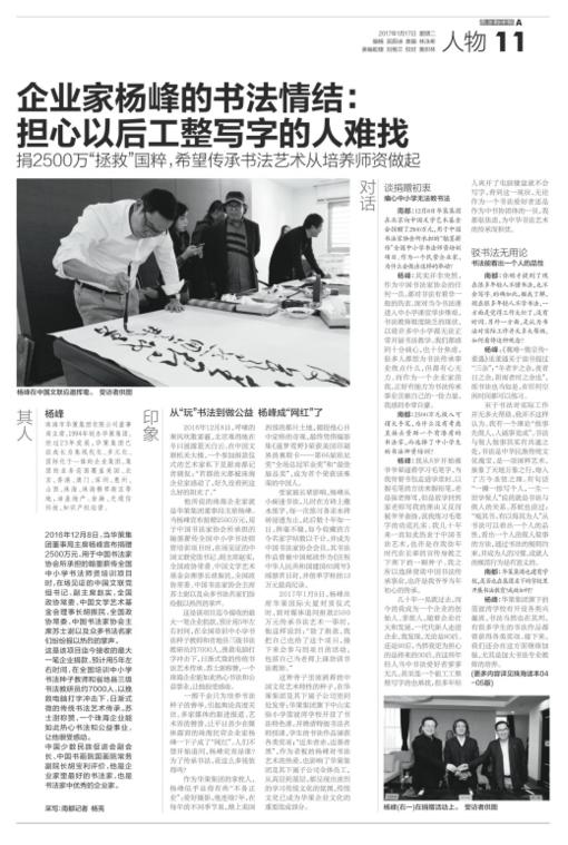 南方都市報——企業家楊峰的書法情結:擔心以后工整寫字的人難找發布時間: