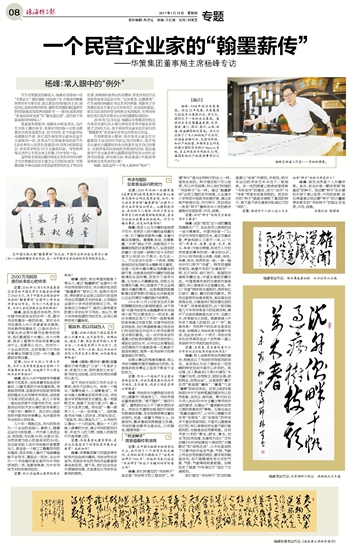 珠海特區報——一個民營企業家的“翰墨薪傳” 華策集團董事局主席楊峰專訪發布時間: