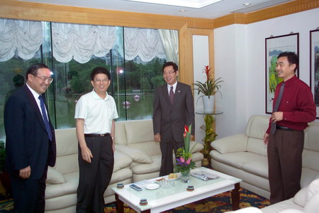 5月31日至6月3日,華策集團有限公司迎來了一批特殊的客人——由美國美豐銀行控股公司董事長李文裕先生率領的,包括中國國民黨中央委員、國民黨中央評議委員會主席團主席、原臺灣農業部長林享能先生、美國晶華健控股公司董事長徐三貴先生、Maritime  Transport  Limited(U.K.) (長榮集團英國機構)總經理John  Williams、臺灣長榮特殊鋼工業 co.Ltd 董事長陳興時博士、NCH  CORPORATION(美國安治化工)中國區總裁BILLY WANG等十一個知名企業的董事長、總經理一行16人組成的海外聯合考察團。在華策集團董事局主席的陪同下,先后考察了中山、珠海。