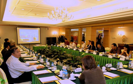 圖為:珠海市政府副市長陳洪輝于6月1日下午在珠海度假村酒店與考察團座談,向客人們介紹珠海的投資環境