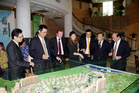 聯合考察團在中山市、珠海市考察期間,珠海華策集團有限公司董事局主席楊峰等公司領導,陪同考察團考察參觀了華策集團開發的珠海粵海國際花園、龍騰灣別墅山莊、中山藍波灣、中山古鎮燈都華廷等樓盤項目及周邊的環境。考察團對珠海、中山的城市環境贊不絕口,同時對我公司開發項目中社區環境、設施配套、物業管理、樓盤綜合品質等給予了高度評價。