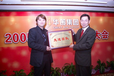 余道群總裁宣布對2005年對集團做出特殊貢獻的謝永生、楊家瓊同志給予重獎。對涌現出來的中山華策置地公司團隊等優秀團隊、王偉國等31名先進個人以及有突出表現的張寶有、李建幫同志給予表彰獎勵。