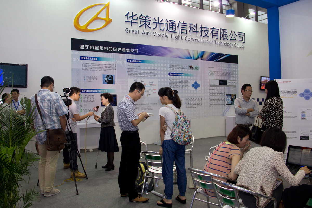 “基于位置服務的白光通信技術”深受各界高度關注。華策光通信科技有限公司展區前人頭攢動:記者、學者、企業家忙于采訪、交流、洽談……