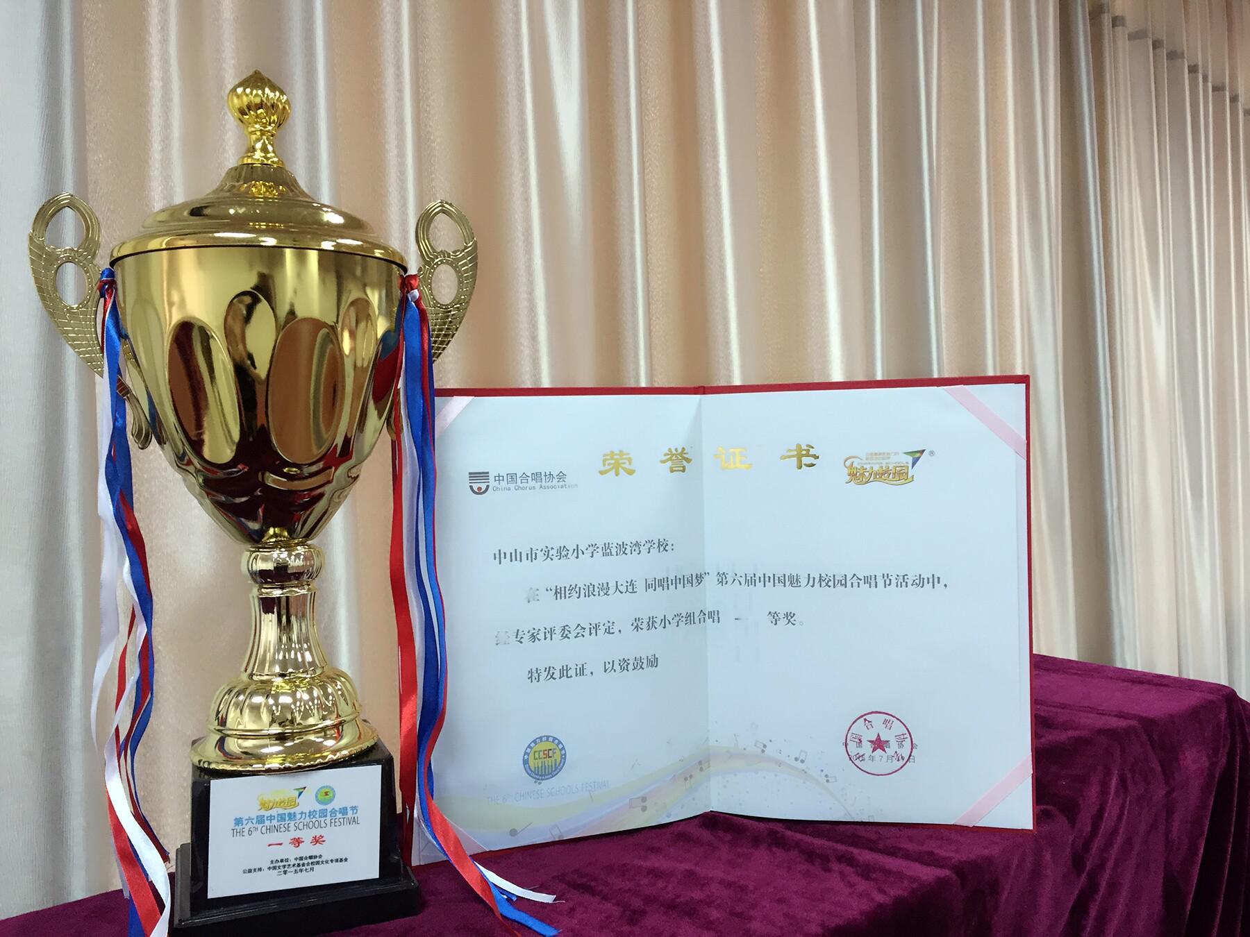 7月17日至21日,由中國合唱協會主辦的“相約浪漫大連 同唱中國夢”第六屆中國魅力校園合唱節在美麗的海濱城市、浪漫之都大連舉行。中山市實驗小學藍波灣學校藍精靈合唱團喜獲全國一等獎。