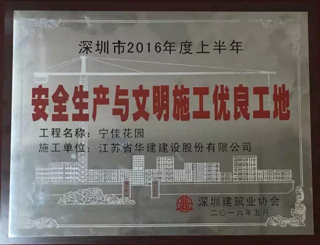 華策中心城日前取得了【安全生產與文明施工優良工地】示范項目的榮譽稱號!為深圳市龍崗區項目獲此殊榮為數不多的在建工程之一!華策中心城的施工單位由國家房屋建筑工程施工總承包特級資質“江蘇華建”承建。“江蘇華建”曾先后獲14項魯班獎、3項國優、7項部優、8項全國用戶滿意工程,被授予全國“創魯班工程特別榮譽獎”、“創魯班獎工程特別榮譽企業”、“全國工程建設質量管理優秀企業”等榮譽稱號。