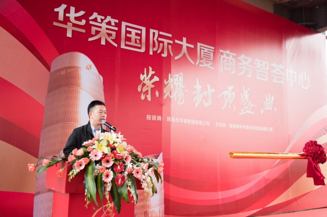 2017年1月9日上午10時30分,華策國際大廈東塔舉辦封頂儀式,橫琴新區黨委副書記葉真、橫琴新區建設環保局局長劉晨光、華策集團董事局主席楊峰、副主席楊智雄、總裁余道群、行政總監趙日云、營銷策劃中心主任姚政等領導出席了封頂儀式。華策國際大廈整體分為東塔和西塔兩部分,西塔已于2016年11月8日封頂,隨著東塔的順利封頂,華策國際大廈全面封頂,并將于2017年部分投入使用,2018年底全部投入使用。