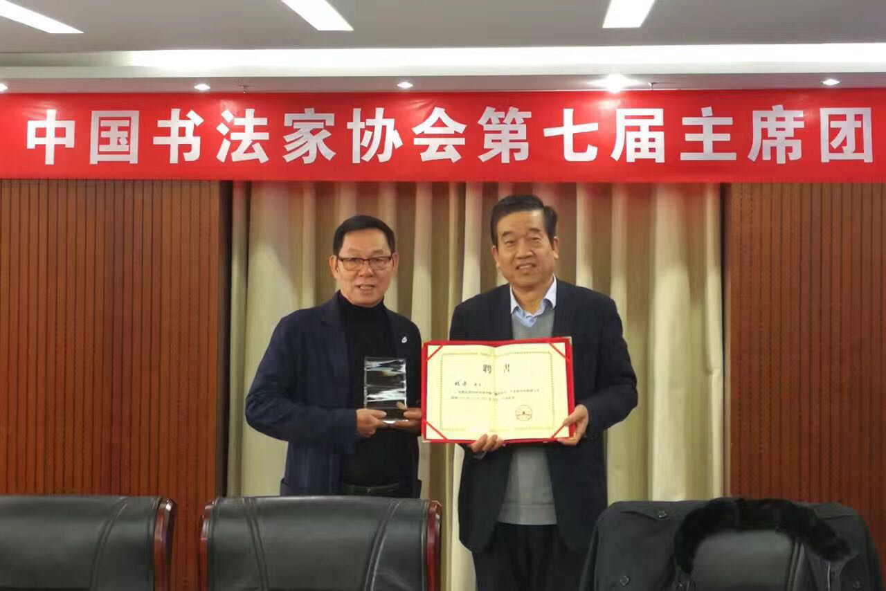 中共中央辦公廳國務院辦公廳聯合印發《關于實施中華優秀傳統文化傳承發展工程的意見》讓我看到了中華民族傳承的希望,尤其是在過去的一年中,我作出的努力和奉獻是感到富有意義的!我在主席團接過士澍主席的聘書,聘書的內容是要我承擔由中國書法家協會承擔的中華遠古傳統文化一一翰墨薪傳的傳承責任,作為中國書法家協會的一員,我已任在身義不容辭。但愿這個遠古在年輕一代中不再認為老土,讓一代代人寫好中國字、做好中國人!我會盡到副主任的職責,哪怕是到了人生鬼為憐鬢發霜白,這個目標和責任也不會放棄!因為我是中國字的傳承人!
