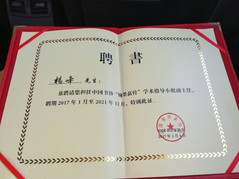 2017年3月1日,中國書法家協會第七屆主席團第五次會議在北京召開,會議傳達學習了中國文聯十屆二次全委會會議精神和《關于實施中華優秀傳統文化傳承發展工程的意見》,審議通過了《中國書協七屆五次主席團會議工作報告》《中國書協2017年度工作要點》《中國書法家協會各委員會管理暫行辦法》,研究討論了第六屆中國書法蘭亭獎工作方案。華策集團楊峰主席在本次會議中,被聘任為中國書協“翰墨薪傳”學術指導小組副主任。