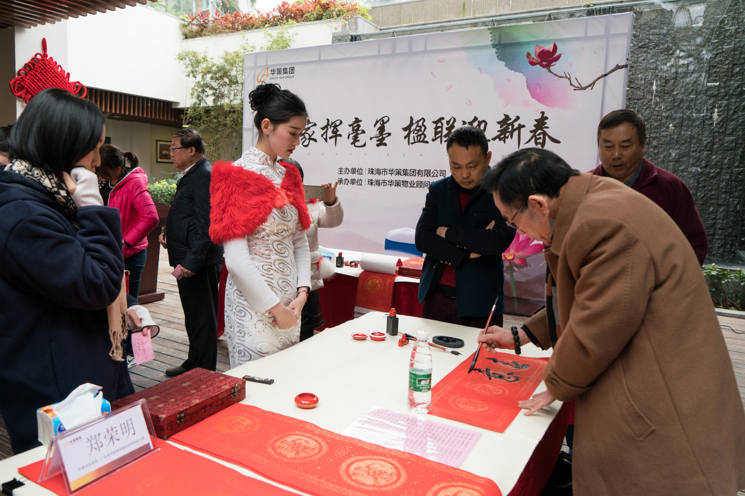 此次活動,中國書法家協會“翰墨薪傳”學術指導小組副主任、珠海市書法家協會名譽主席、華策集團董事局主席楊峰,中國書法家協會理事、廣東省書法家協會常務副主席兼秘書長紀光明,中國書法家協會會員、廣東省書協主席團成員王志敏,中國書法家協會會員、廣東省書法評論家協會常務副主席鄭榮明,中國書法家協會會員龍錦營以及華策集團行政總監程因等領導與書法家們親臨現場,用匠心傳承文化為居民們送上一副副出自書法名家創作的春聯。