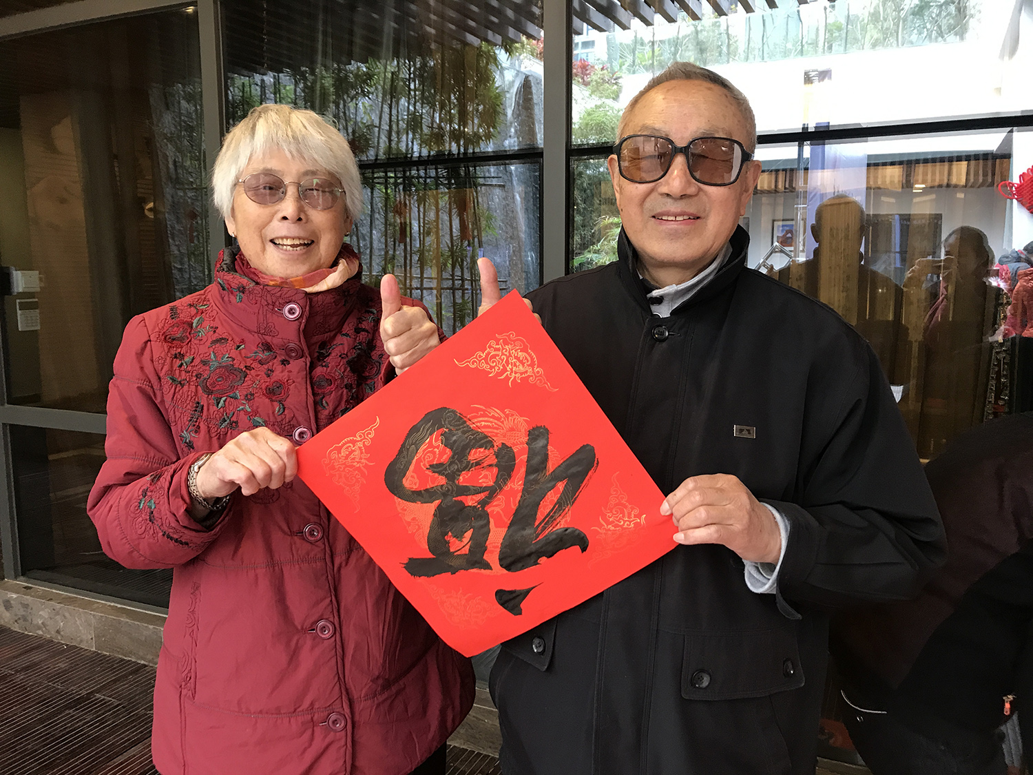 參與書法迎新春活動的一對老夫婦