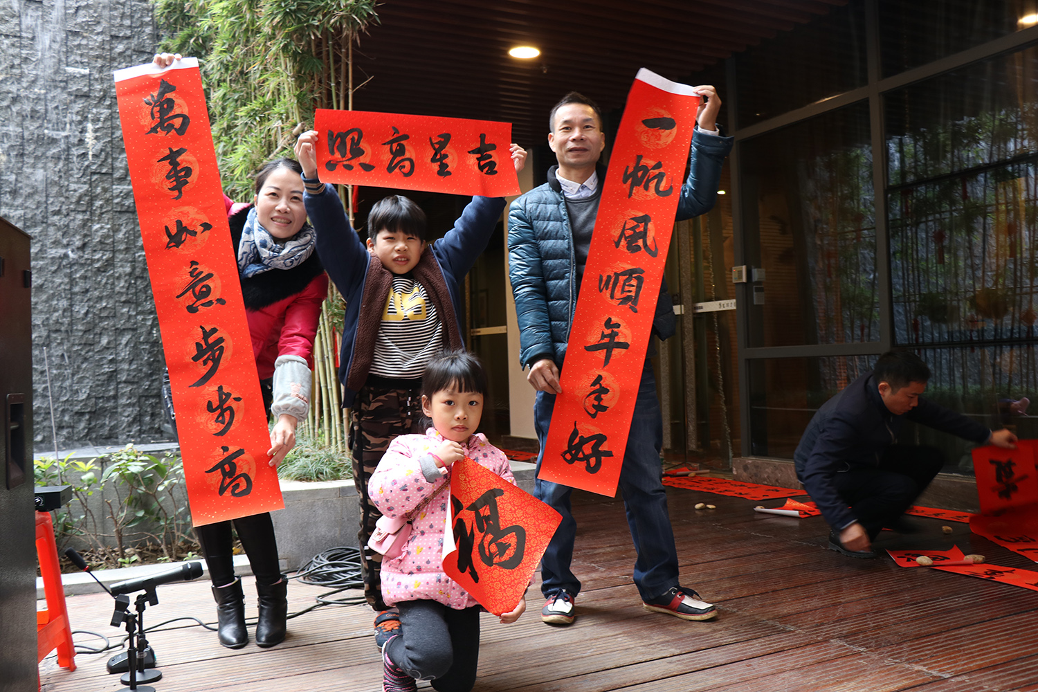 華策·南灣國際居民一家展示新春對聯