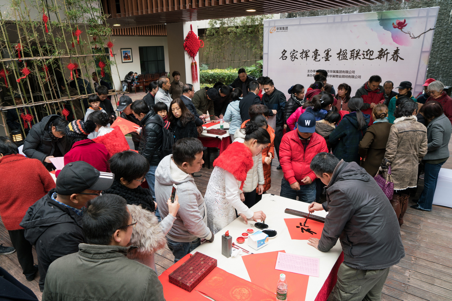 華策集團不僅在企業內部及旗下項目大力推崇書法傳承事業,更積極致力于國內乃至全世界的中國傳統文化的傳承與推廣。楊峰主席在此次活動中表示:“過新年貼春聯依據史記是從戰國時代流傳至今,已有二千多年的歷史,我從孩提開始一年一歲、歲歲年年同樣傳承著習俗買春聯、寫春聯、貼春聯。今天在這里舉行的活動是中國書法家協會的老師們在現場揮毫送春聯,通過此活動,旨在‘傳承與習俗交融’,以溫故知新的現場氛圍暖年味。今天的天氣雖然寒風習習,但書法家與居民的交融熱情高漲、情暖融融,像這樣的活動我們有責任發揚,有責任傳承?!?/span>