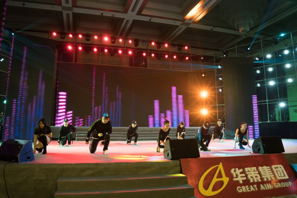 華策集團2018年迎春晚會在云浮公司帶來的開場舞《鼓舞飛揚》中正式啟幕。鼓樂齊鳴、旗幟飄揚,激情澎湃的舞姿將現場氣氛點燃。