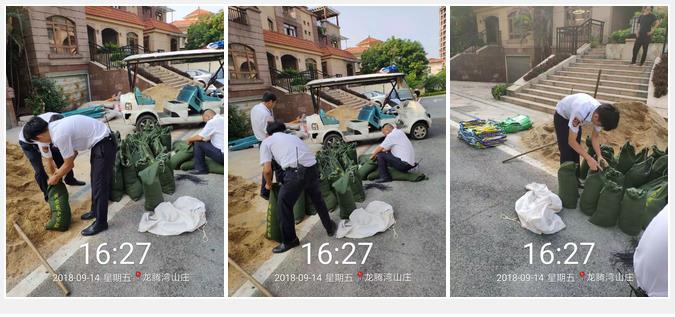 臺風襲擊前48小時,龍騰灣小區啟動應急預案,防汛沙袋全部到位