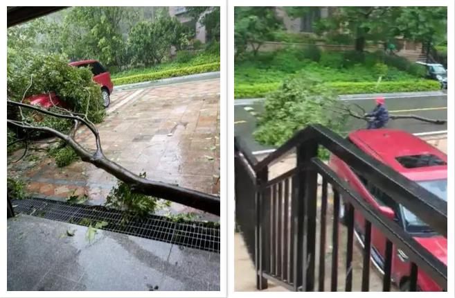 9月16日,龍騰灣1202業主車輛被臺風吹斷的大樹枝壓住,秩序隊員羅斌不顧個人安危、冒著風雨將大樹拖離業主車輛,隨后通知業主將車轉移至安全地帶