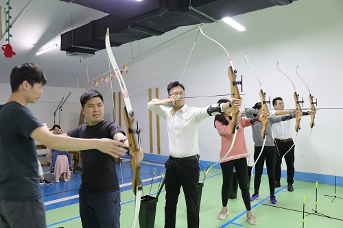 當天,集團文宣部為壽星們精心籌備了射箭活動。據悉,射藝是古代教育人才的六藝(禮、樂、射、御、書、數)之一,早在夏朝,我國便有了教授射箭的專職教員。作為一項古老而充滿魅力的運動,射箭講求動靜之間的感悟大道。在中國的冷兵器時代,弓箭是最厲害的武器,優(yōu)秀的射藝體現了一個民族的武力與國家的強大,“射”與“禮”相結合,更展現出傳統(tǒng)文化的無窮魅力。