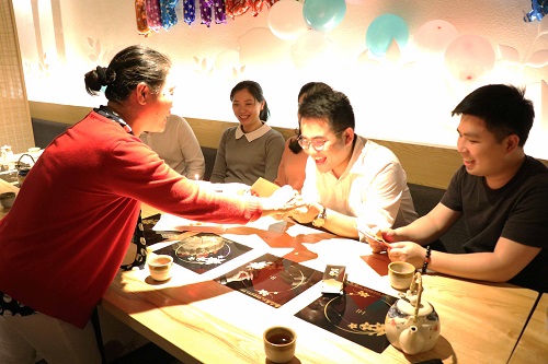 以情相牽,以愛相聚。射箭活動結束后,壽星們移步至就餐地點。一道道精致的日料依次呈上,壽星們的味蕾得到了真正的享受。隨后,在集團工作二十余年的元老級華策人“彭姐”更為壽星們派發(fā)了華策集團特別定制的生日賀卡,并逐一送上真摯的祝福。