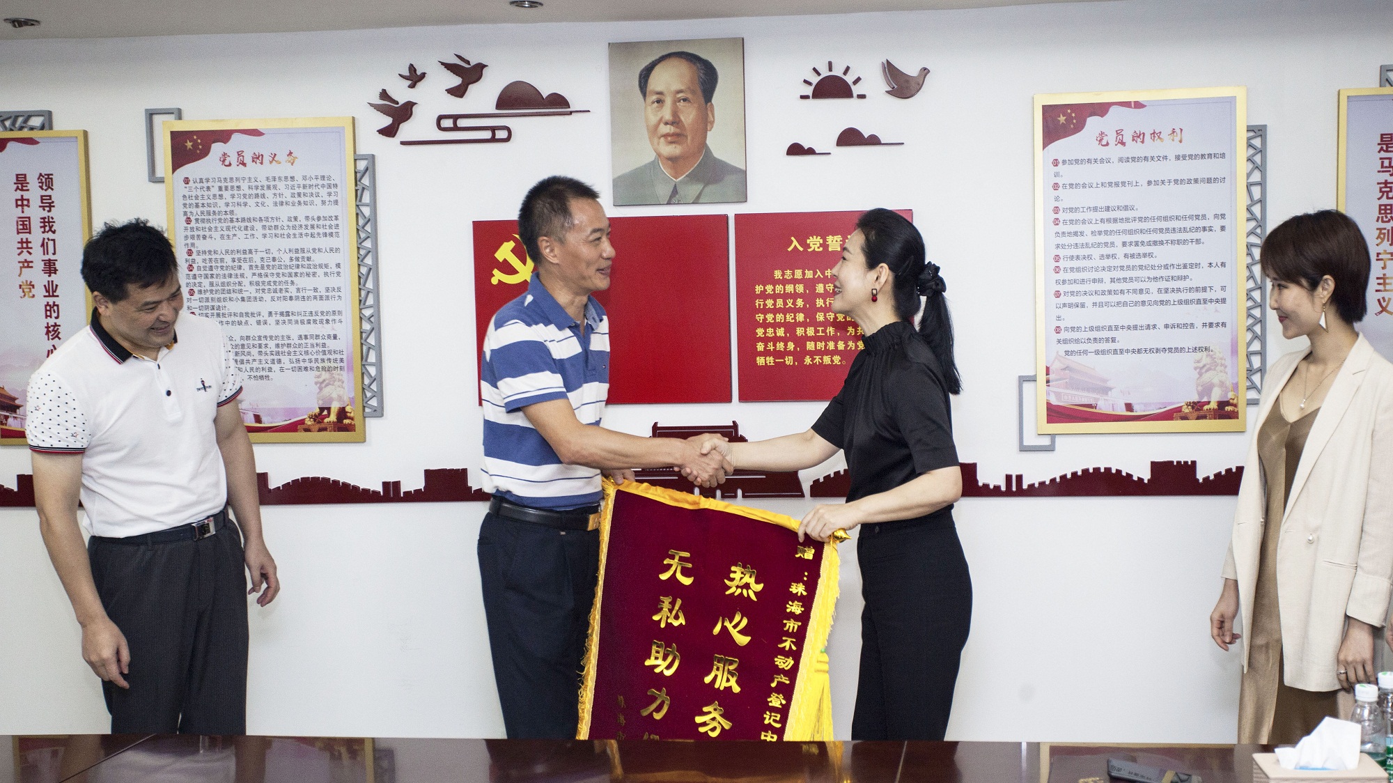 “感謝市不動產登記中心長期以來為華策集團排憂解難,盡職盡責地提供優(yōu)質服務?!?月17日上午,華策集團董事行政總監(jiān)程因,資金計劃二部總經理陳小燕,文宣部主任陳曉芝等為登記中心送去一面印有“熱心服務企業(yè)困難,無私助力經濟發(fā)展”的錦旗。珠海市不動產登記中心副主任張川、曾德軍,受理科負責人盧建芝,辦公室負責人陳向陽等代表登記中心接收錦旗。