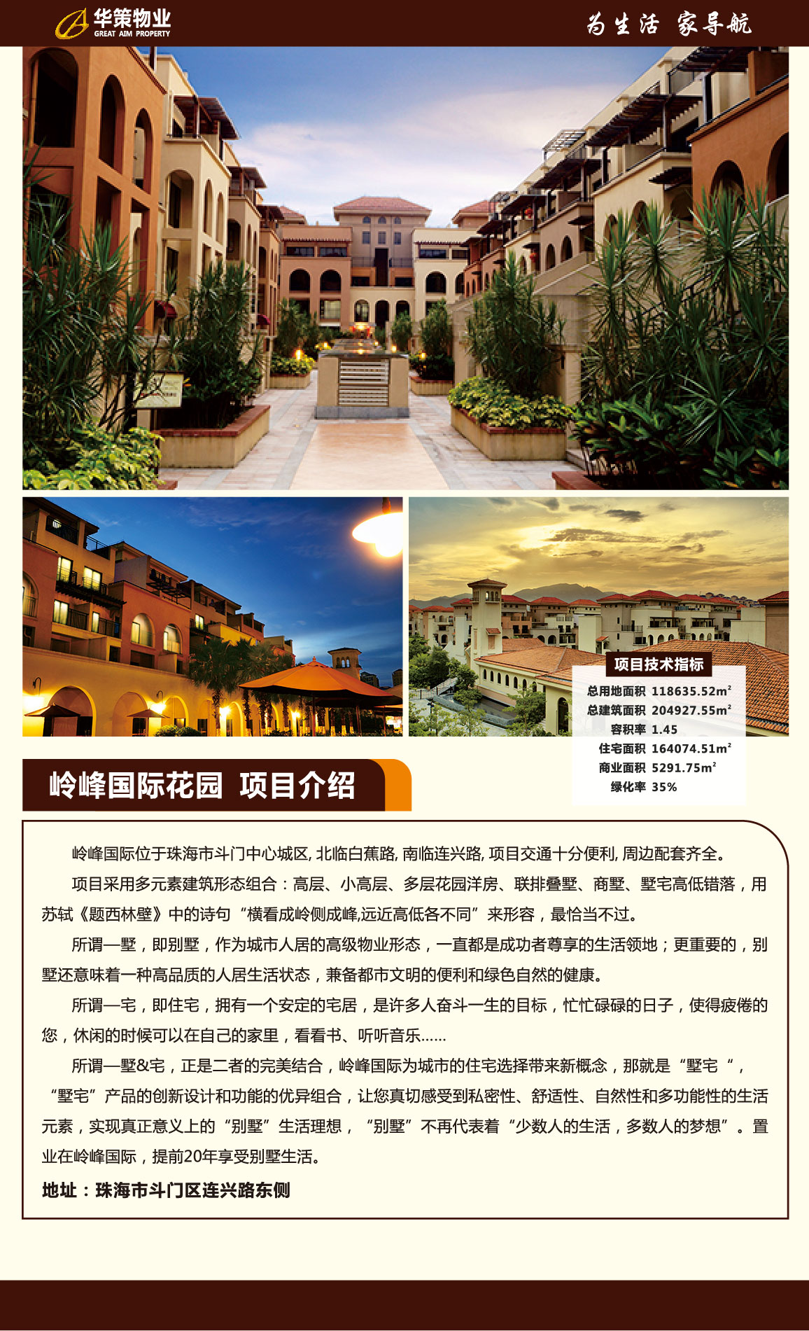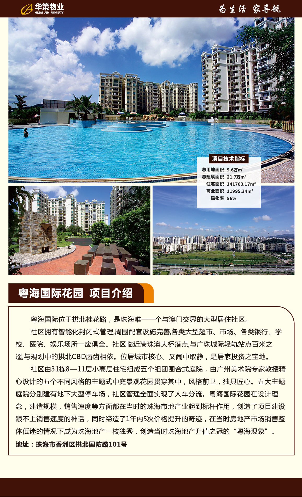 目前,華策物業(yè)管理的項(xiàng)目有珠海粵海國(guó)際花園、華策大廈、龍騰灣山莊、南灣國(guó)際、嶺峰國(guó)際、云浮·星科國(guó)際公館等,管理類(lèi)型涵蓋高檔住宅小區(qū)、別墅、辦公商業(yè)樓宇等。其所管轄的各類(lèi)物業(yè)先后榮獲多項(xiàng)省、市級(jí)以上的榮譽(yù)稱(chēng)號(hào)。其中,粵海國(guó)際花園榮獲“全國(guó)物業(yè)管理示范單位”殊榮,南灣國(guó)際榮獲“珠海市物業(yè)管理優(yōu)秀住宅小區(qū)”稱(chēng)號(hào)。