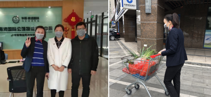 疫情初期正是年關(guān),粵海國(guó)際花園服務(wù)中心秩序主管秦艷龍舍小家,顧大家。帶領(lǐng)項(xiàng)目秩序隊(duì)員堅(jiān)守崗位奔波一線。第一時(shí)間采購疫情必需物資,啟動(dòng)應(yīng)急預(yù)案,小區(qū)實(shí)行封閉式管理,所有外來人員,車輛不可進(jìn)入小區(qū),共享單車在小區(qū)外統(tǒng)一擺放。小區(qū)所有進(jìn)出人員測(cè)體溫,并積極配合業(yè)委會(huì),居委會(huì),派出所在園區(qū)宣傳,上門走訪檢查,對(duì)不配合的業(yè)主進(jìn)行解釋溝通。粵海國(guó)際花園服務(wù)中心還給有困難的業(yè)主送快遞,外出采購物資親自送到業(yè)主家門口。
