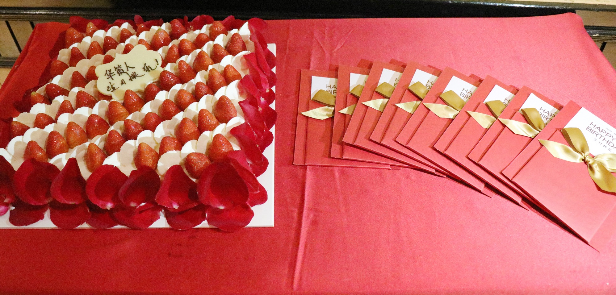 歌聲陣陣,笑語片片,談笑間,寓意“紅紅火火”的“華策人生日快樂”的生日蛋糕出場了,溫馨的生日歌旋律隨之響起。將整個生日會的溫馨氛圍推向高潮。每一個人都攜帶著美好愿望告別了過去的甜酸苦辣,迎接人生新一歲、新一次的攀登。