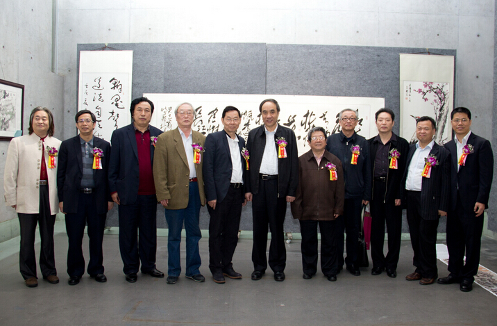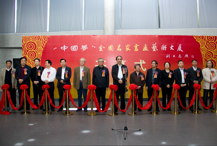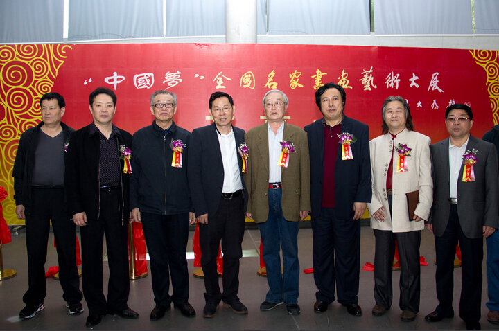中國書畫家協(xié)會副主席、集團(tuán)董事局主席楊峰(左五)出席“中國夢”全國名家書畫藝術(shù)大展