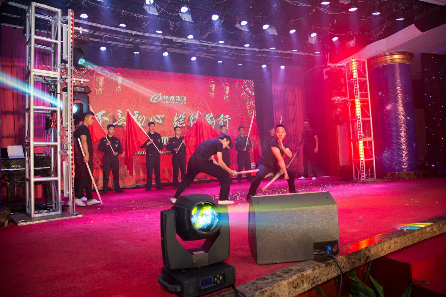 晚會上,華策人還用特別的形式展現了華策文化。朗誦配沙畫表演《腳踏科技路,不忘樹藤心》,用詩句描繪、用沙畫勾勒、用聲色的完美結合講述了華策的發展史;剛柔并濟的《樹與藤》舞蹈,以獨特形式展現了華策的樹藤文化,斗志昂揚、氣勢磅礴,巾幗風采不讓須眉;詩詞配舞蹈表演《俯首甘為孺子牛》,由區域銷售總監曾文雄作詞,情文并茂、蕩氣回腸,一詞一句都展現了華策的特有文化;視頻配歌曲聯唱《華策超級英雄之平凡英雄》以獨特立意拍攝視頻,收錄了華策集團每個平凡英雄的笑臉,情節風趣、內容深刻,不亞于好萊塢大片。