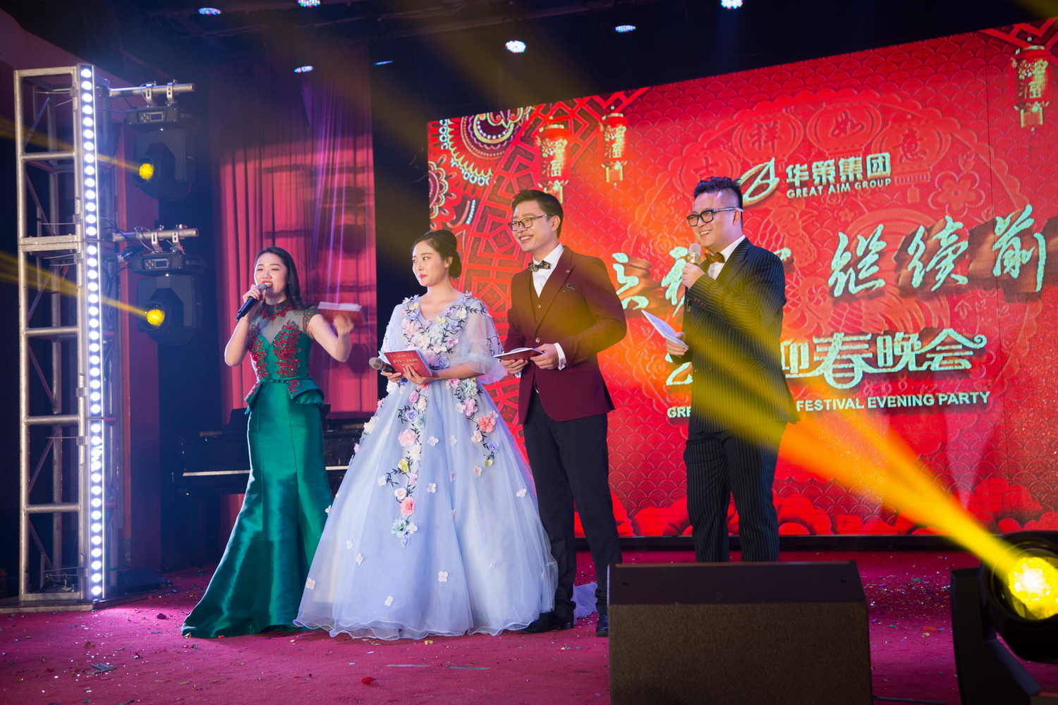 孔靖芳、劉西洋、趙詩華、陳哲為2017迎春晚會現場主持