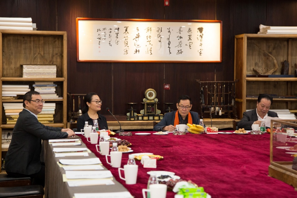 楊峰主席(右二)、楊智雄常務副主席(左一)、趙日云董事、行政總監(左二)熱烈歡迎鄭佳主席(右一)